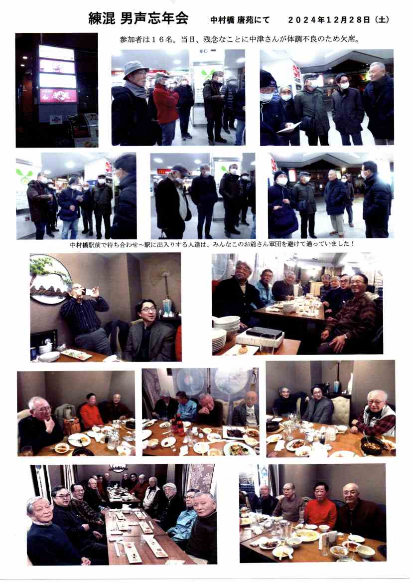 ◆練混 男声忘年会 中村橋 唐苑にて