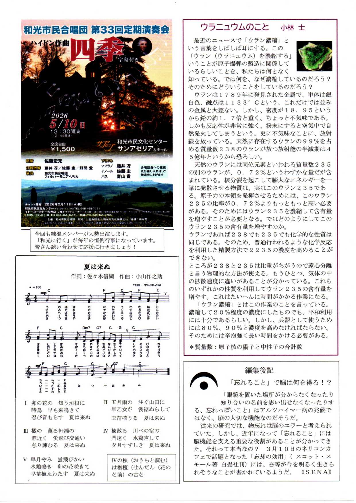 ◆フェルマータ 2023年度 第9号 号外 2024年3月29日発行